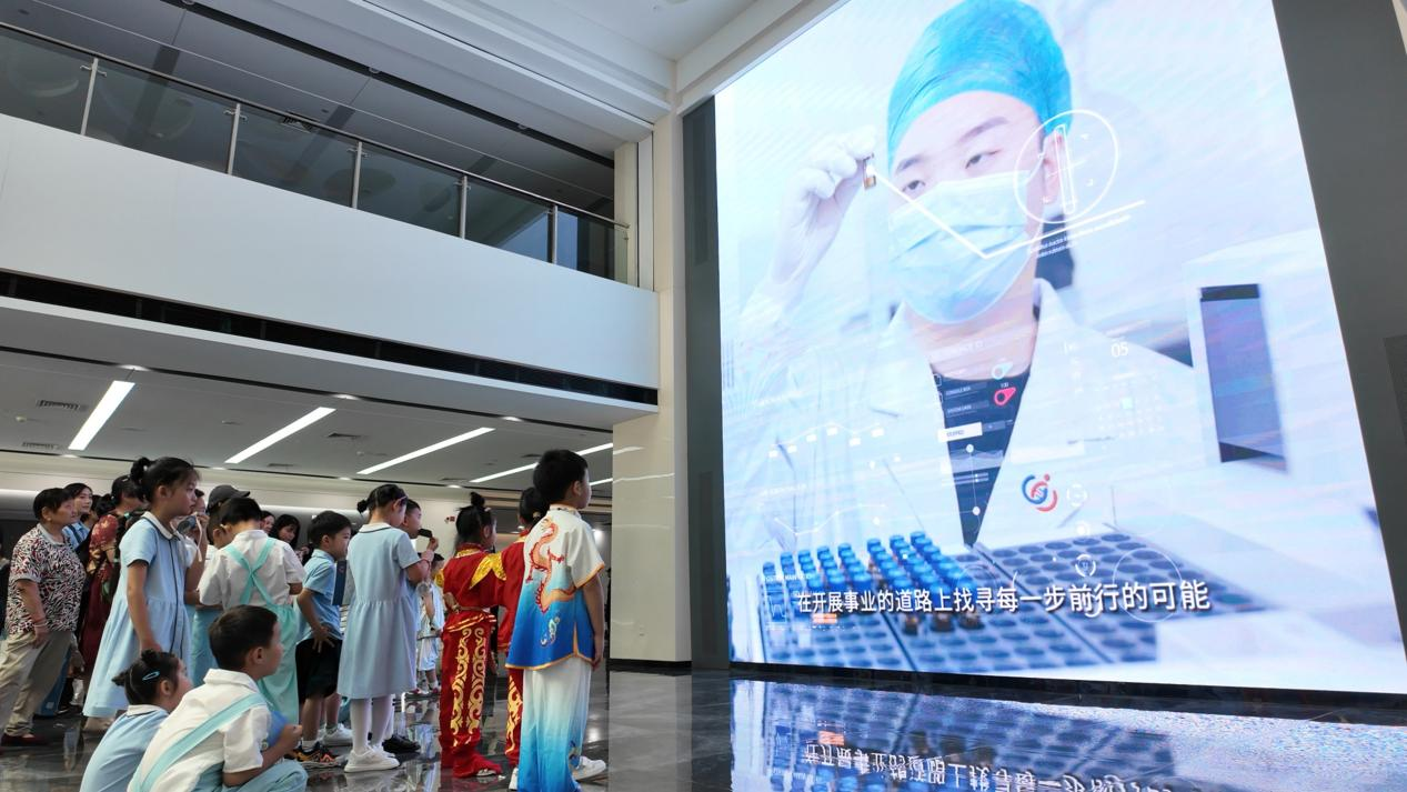 典禮結(jié)束,孩子們參與了一場最具特色的沉浸式課堂——揭秘基因庫!在專業(yè)講師的引領(lǐng)下,孩子們聆聽著生命遺傳的奧秘,觀察精密儀器,將“智創(chuàng)星辰”的種子深植心田。